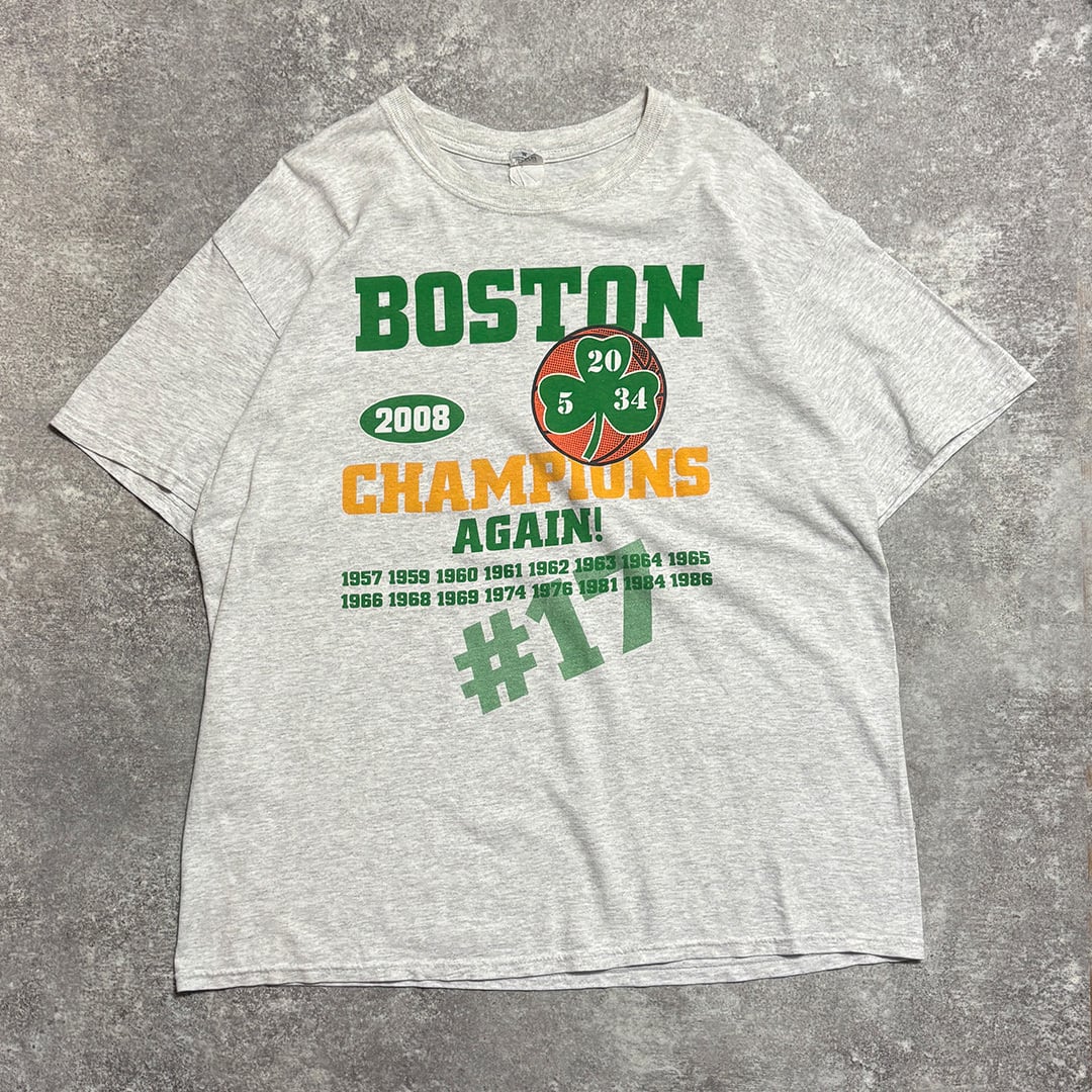 ボストン・セルティックス2008年NBAチャンピオンを記念したデザインの半袖Tシャツ。