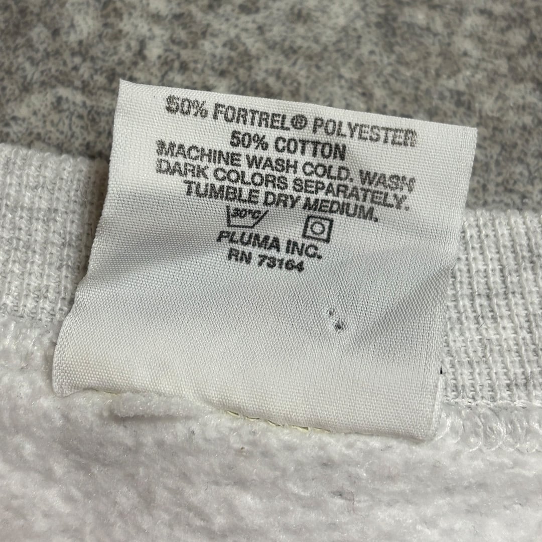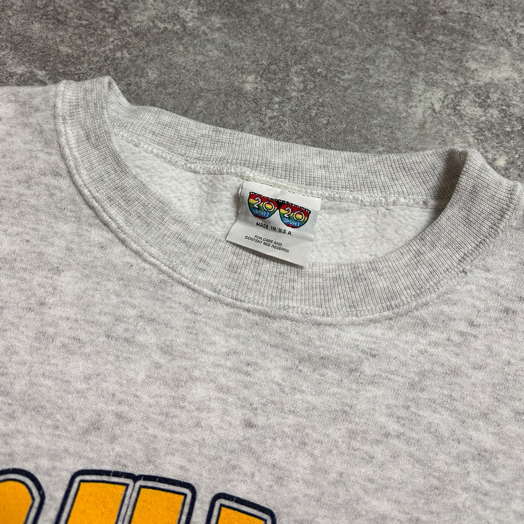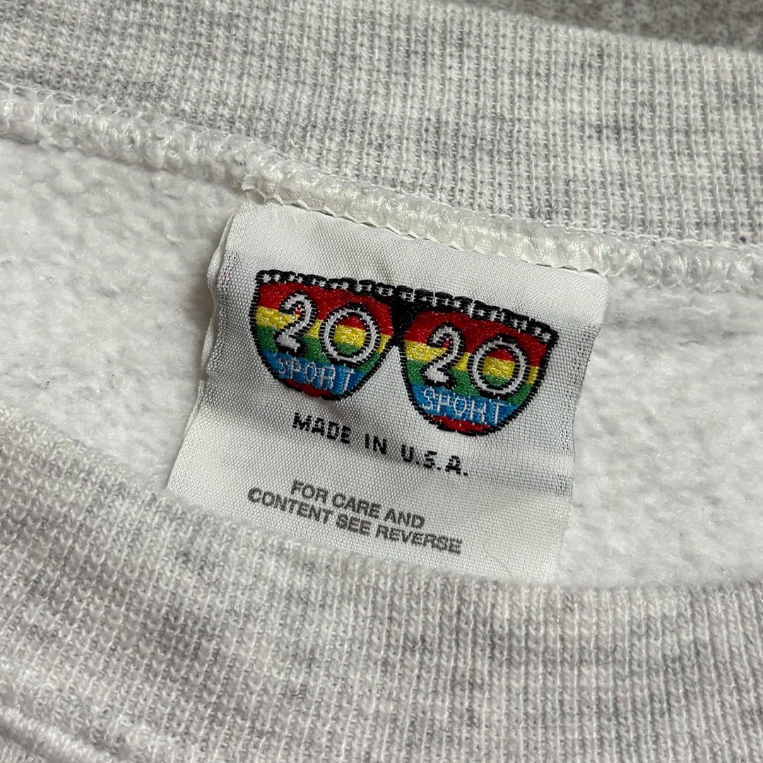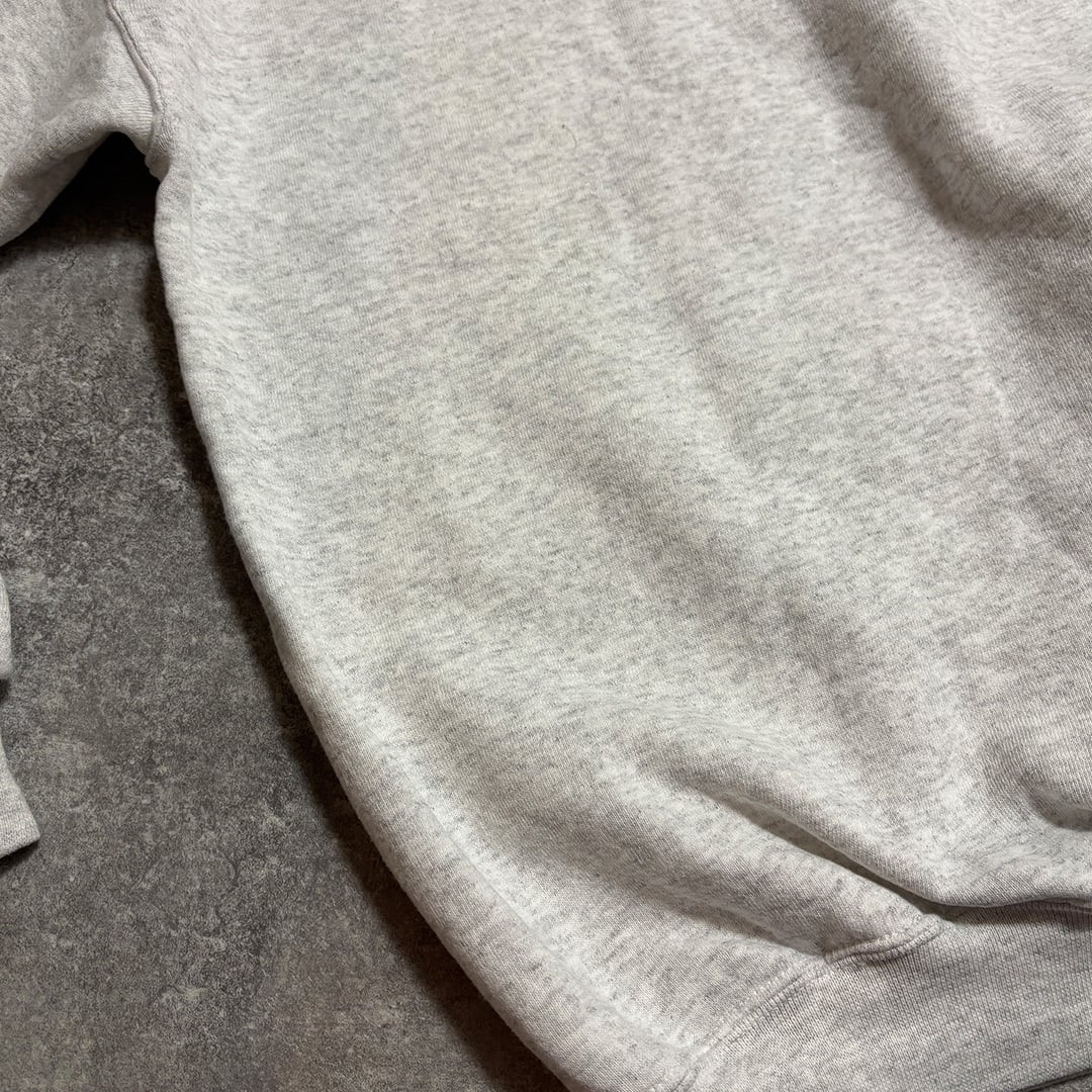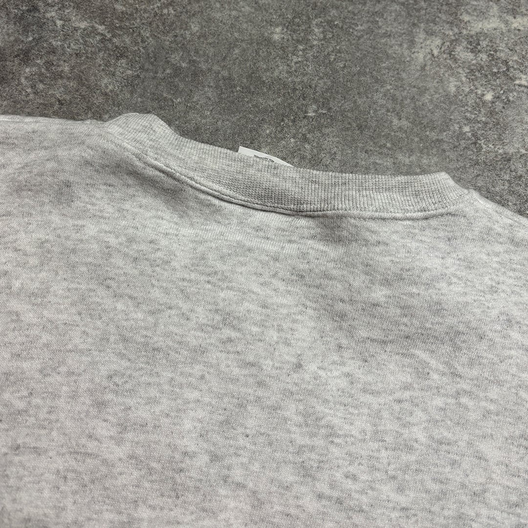 グレーのボディにレトロなプリントデザインが素敵なカレッジスウェット。