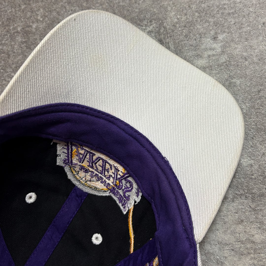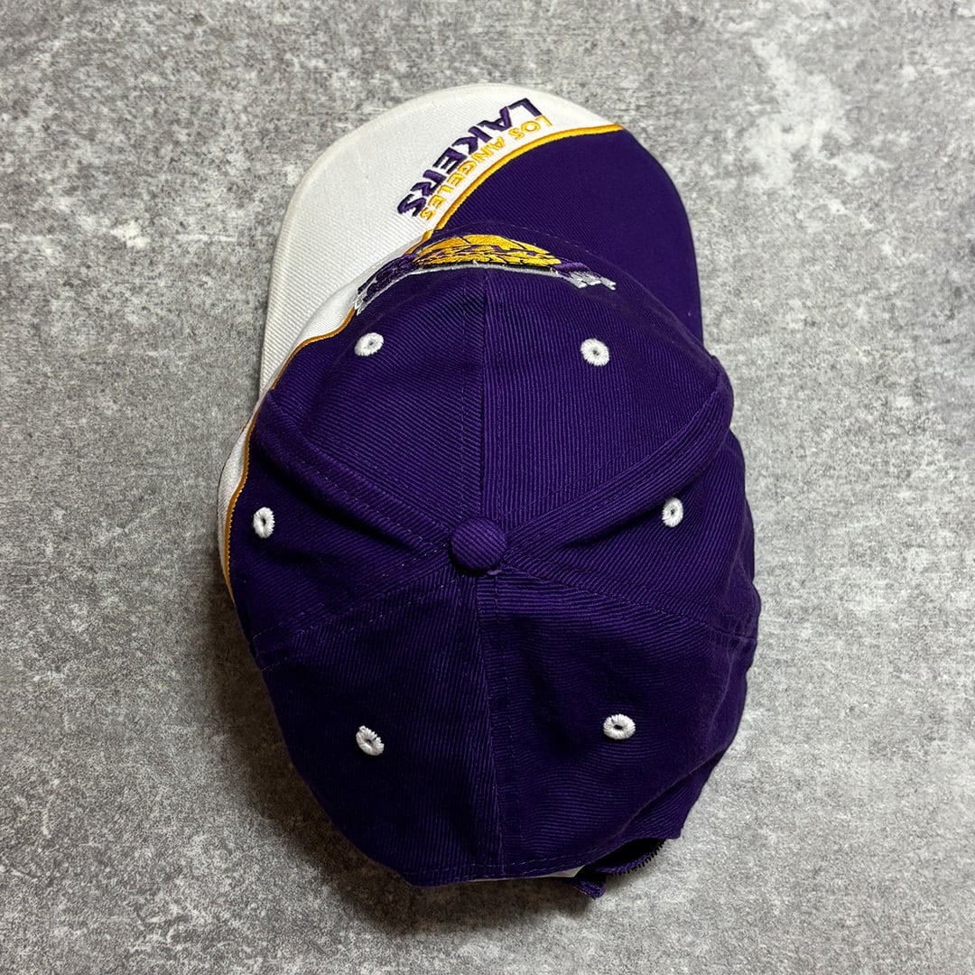 ロサンゼルス・レイカーズのチームロゴ刺繡が入ったOLDキャップ。