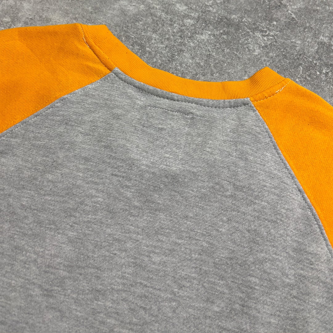 チームロゴプリントが入ったラグランスウェット。
