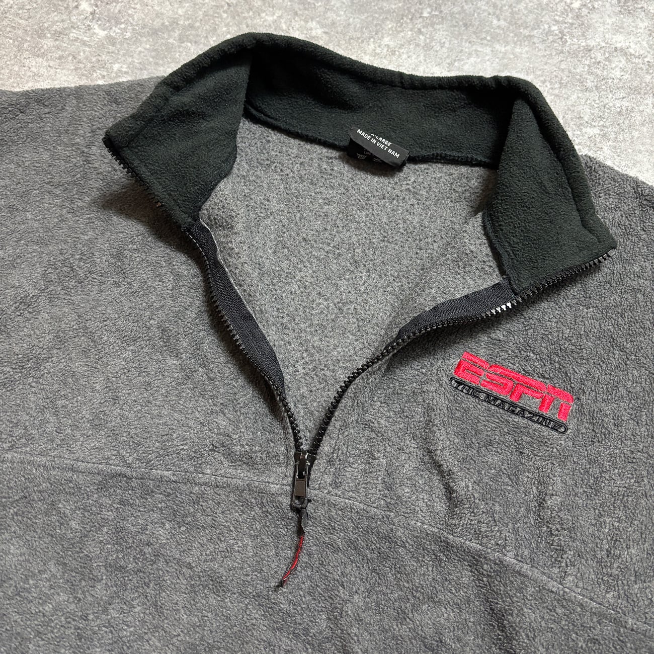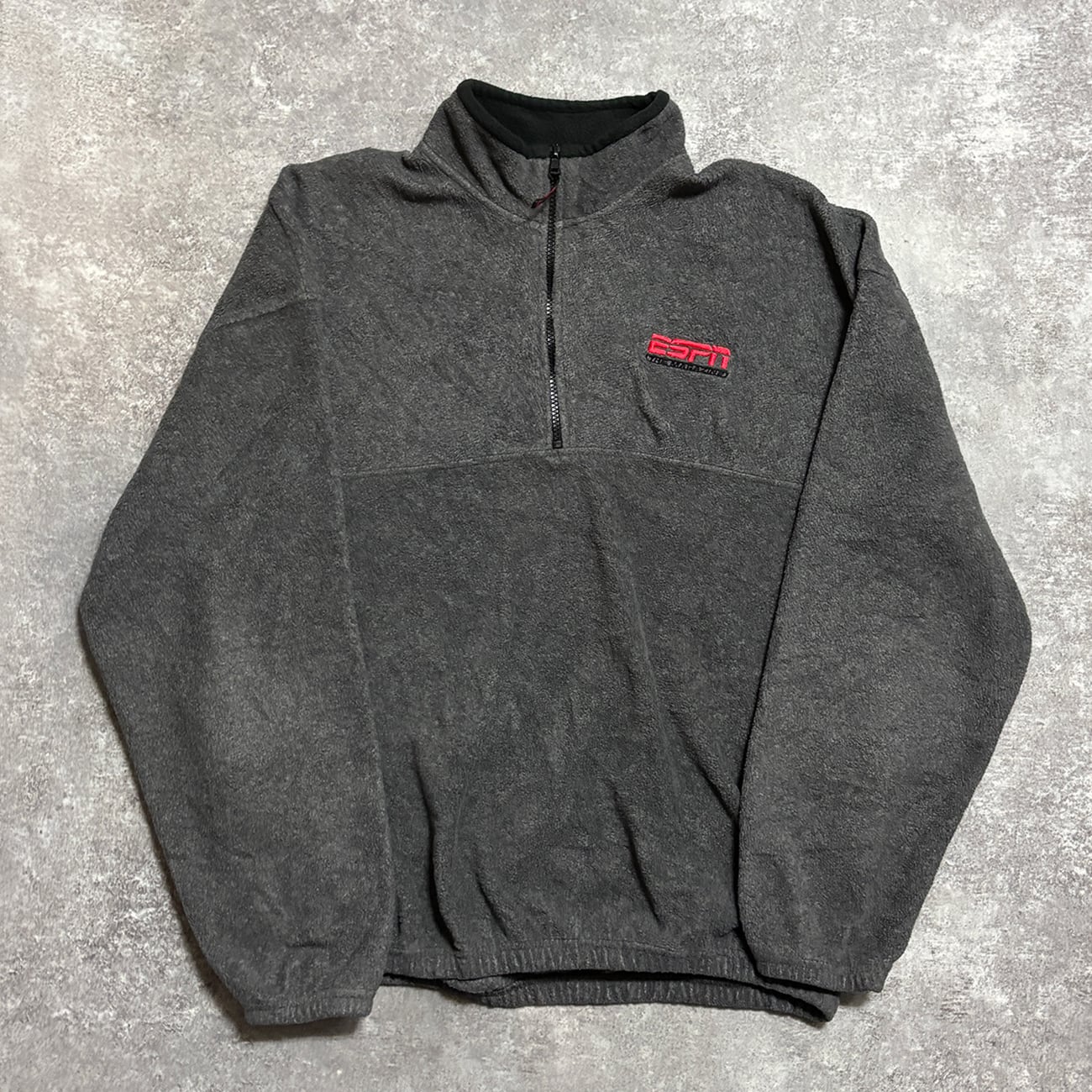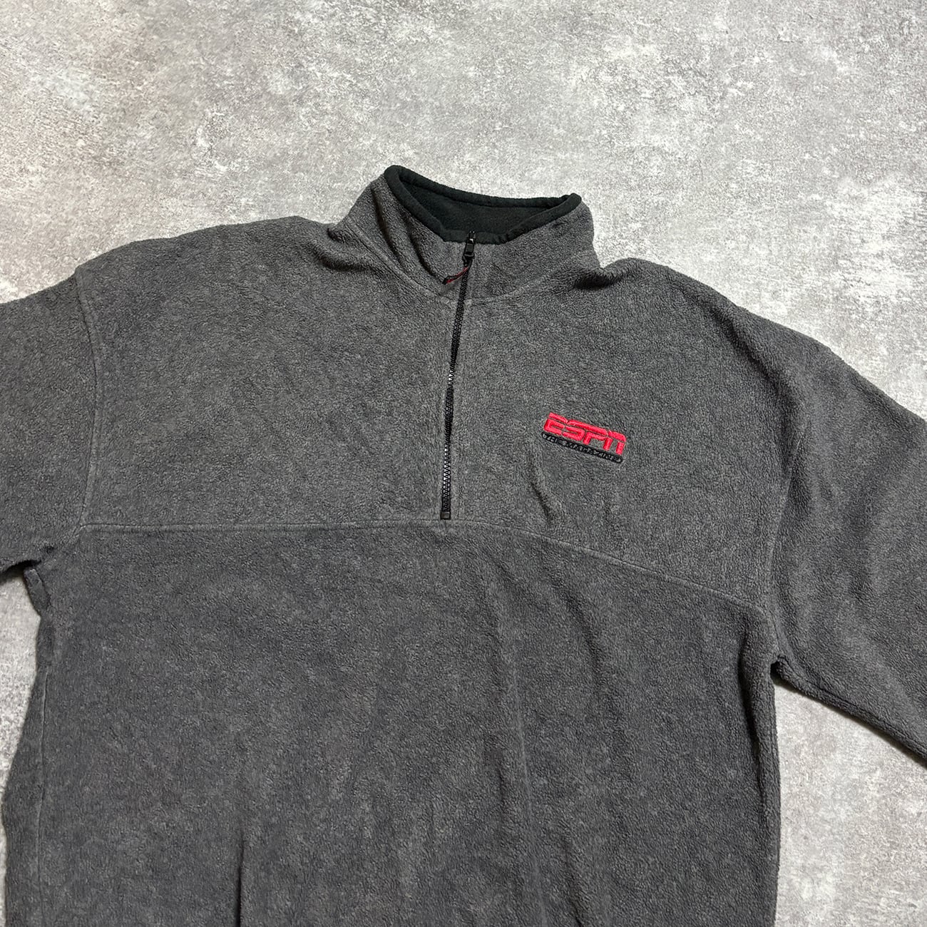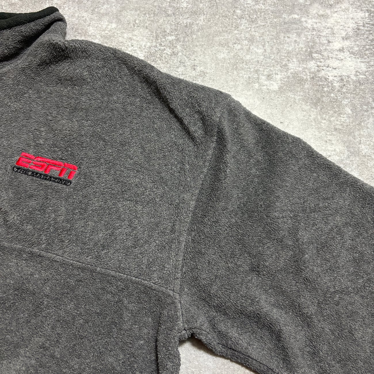 「ESPN THE MAGAZINE」の刺繍が胸に配されたハーフジップフリース。